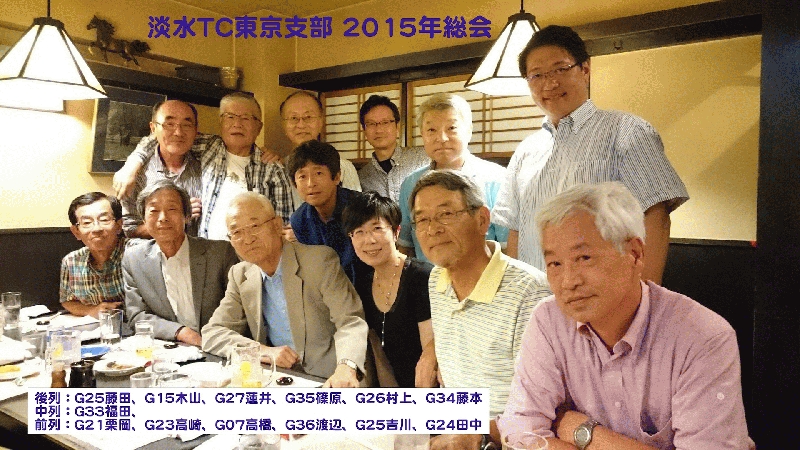 その後の懇親会では、新任役員の挨拶、テーマ毎の情報交換が開始され、木山(G15)さんからはG10-17合同同期会の話、篠原(G35)さんからは本部テニス会の状況が報告されました。